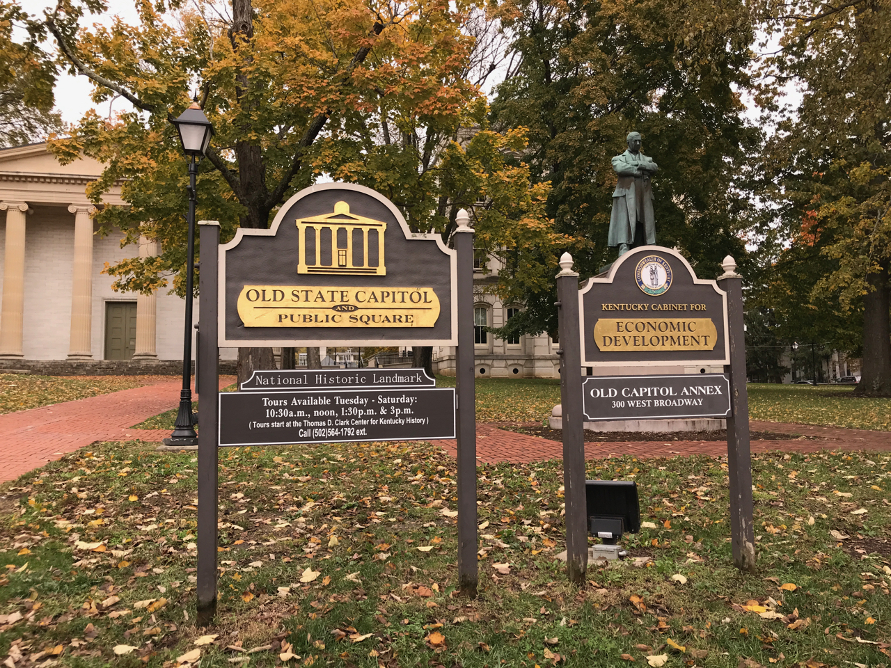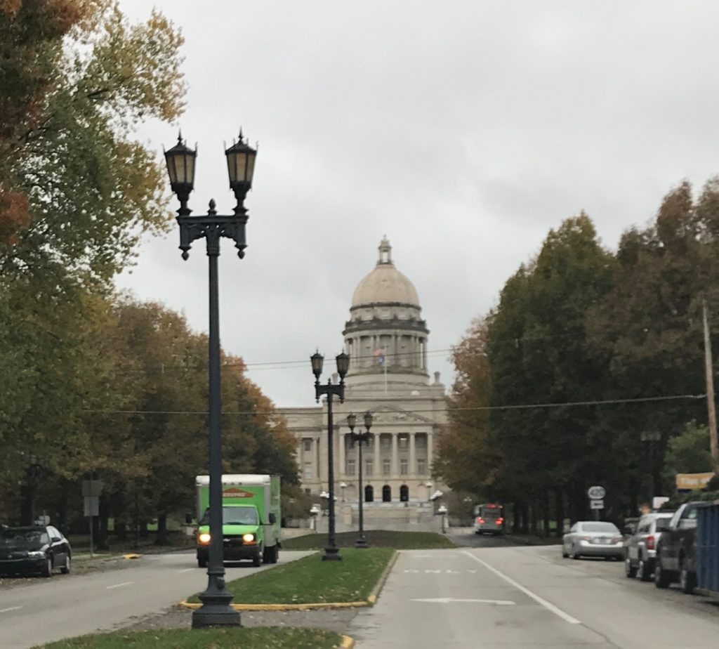 I arrived in Frankfort. It wasn’t too hard to pick out the capitol. Although it is the capitol of Kentucky, it has a small-town feel to it. I looked up the population and discovered that an estimated 28,000 people live there. It is classified as a home-rule class city.