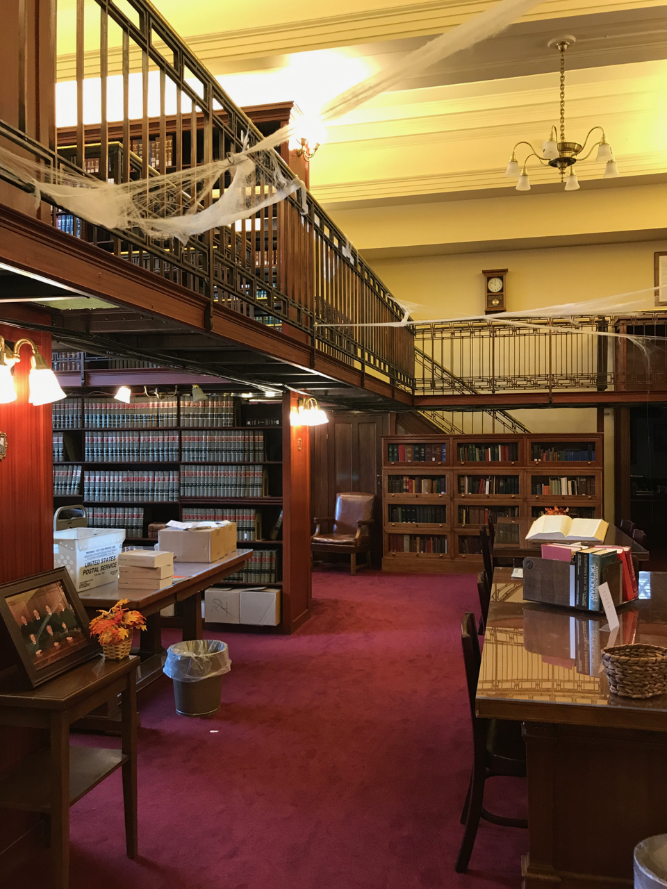 It was just after Halloween when I visited, and the library was still decorated for the season, with cob webs galore.