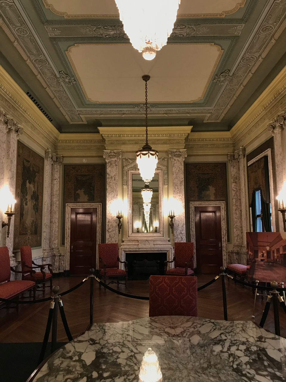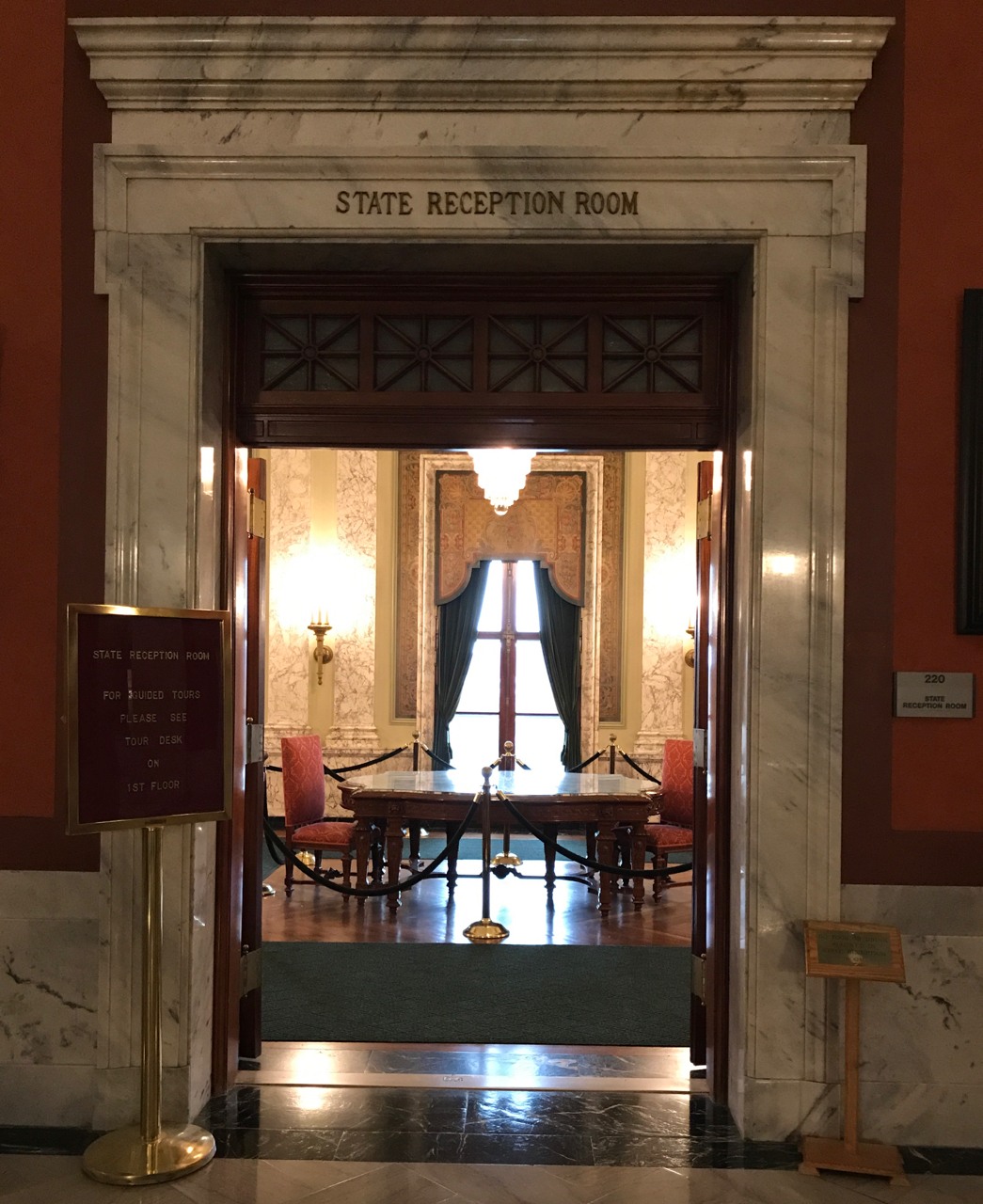 Before I left, I asked if they had a brochure for the self-guided tour. There was a guide, but it had to be returned to the desk. I have no cause for complaint – Wikipedia can give me the information that I can’t remember and I did get a sticker from the governor’s office. Besides, the visit was free.