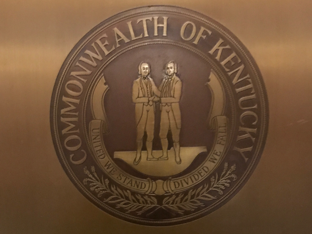 The seal of the Commonwealth of Kentucky. I got to wondering about the difference between a state and a commonwealth, so I went looking. Essentially, there is no difference. There are four states that identify themselves as commonwealths. (If you want to check your knowledge, you can click on the link and see if you were right.)