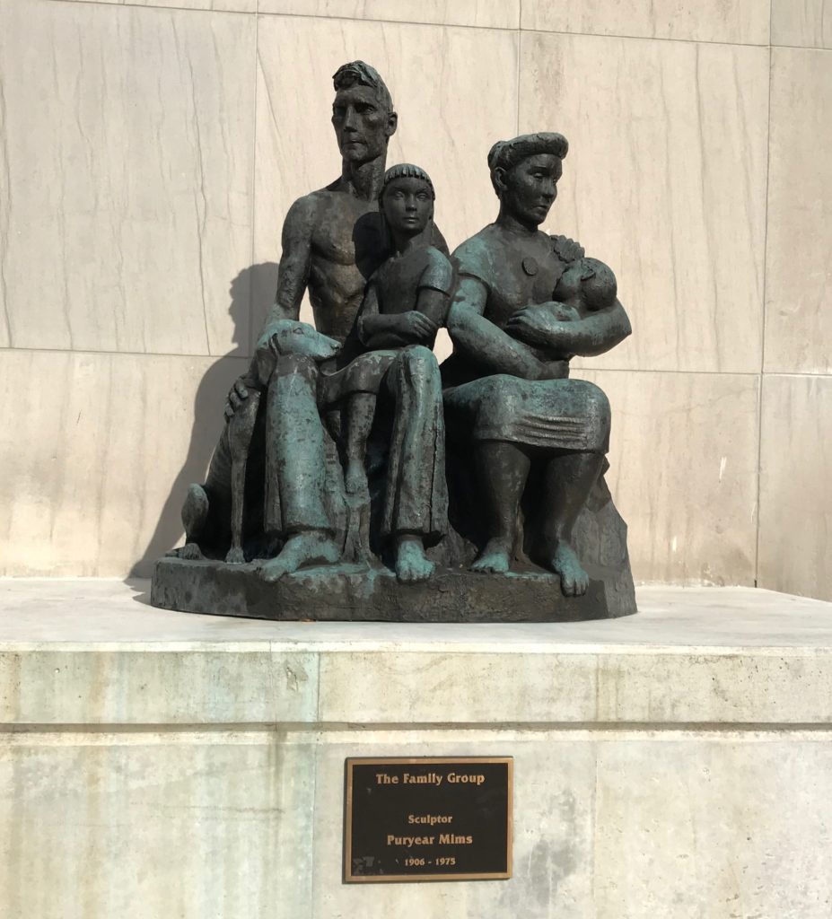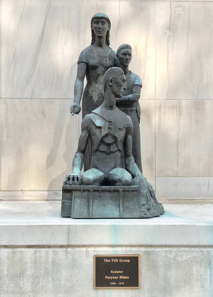 I wondered if there might be a better photo that showed the sculptures in better detail. I found one here, on the Frankfort Public Art website. I also learned that it was the work of David Henry Niehaus and is made of Indiana Limestone.