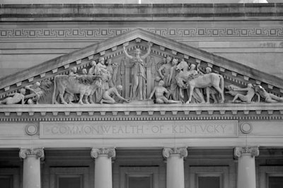 This building was designed in the Greek Revival style by 25-year-old Gideon Shyrock of Lexington, and it was his first building. His chose the Greek Revival style to symbolically link the relatively young republic of Kentucky with ancient Greece, the prototype of popular democratic government.