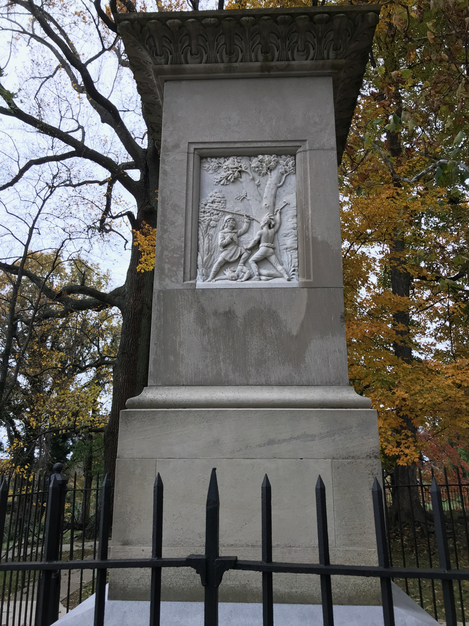 The monument was erected in 1860 and the marble panels were added in 1862. The panels were vandalized during the Civil War and restored in 1906 and again in the 1940s.