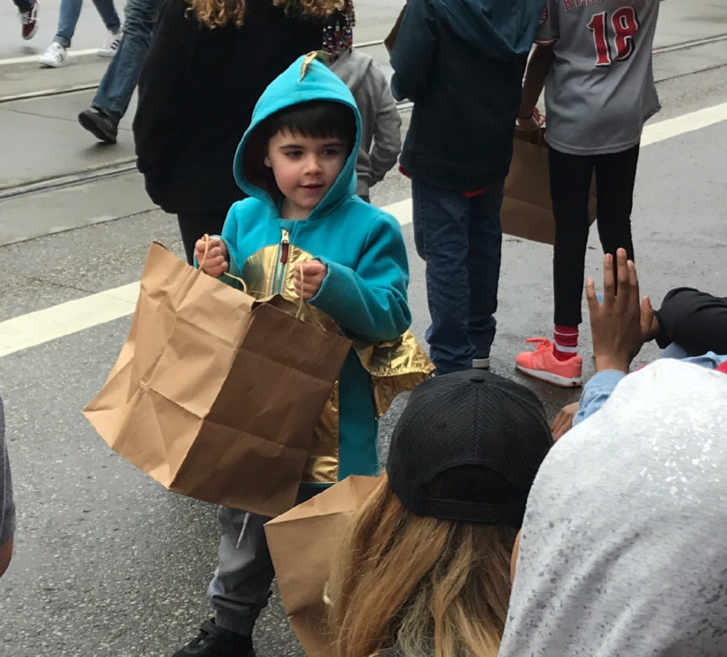 The poor kids are still waiting hopefully for the first treat to be thrown.