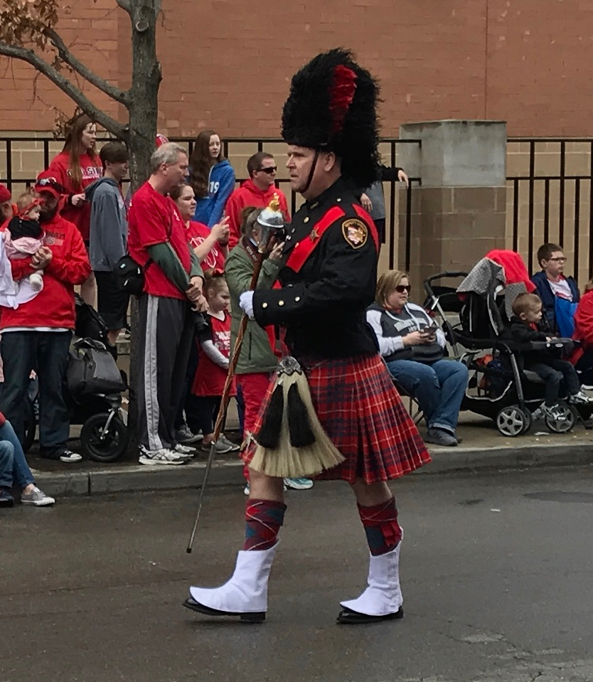 The Drum Major was really strutting his stuff! Incidentally, that staff he is carrying is called a mace.