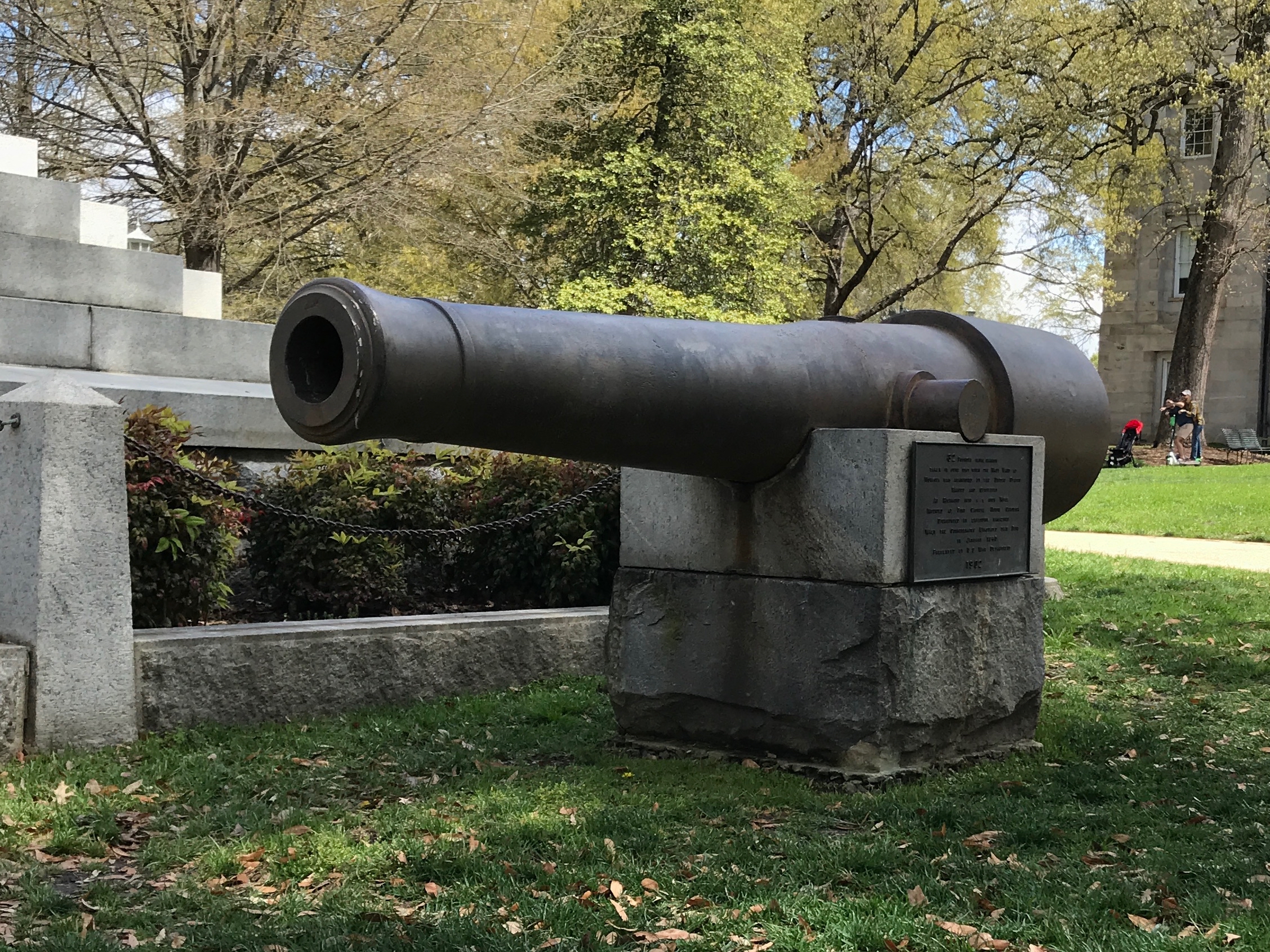 This 32 pounder naval cannon was taken in June of 1861 when the Navy Yard at Norfolk was abandoned by the Union. It was presented by the U.S. War Department in 1902.