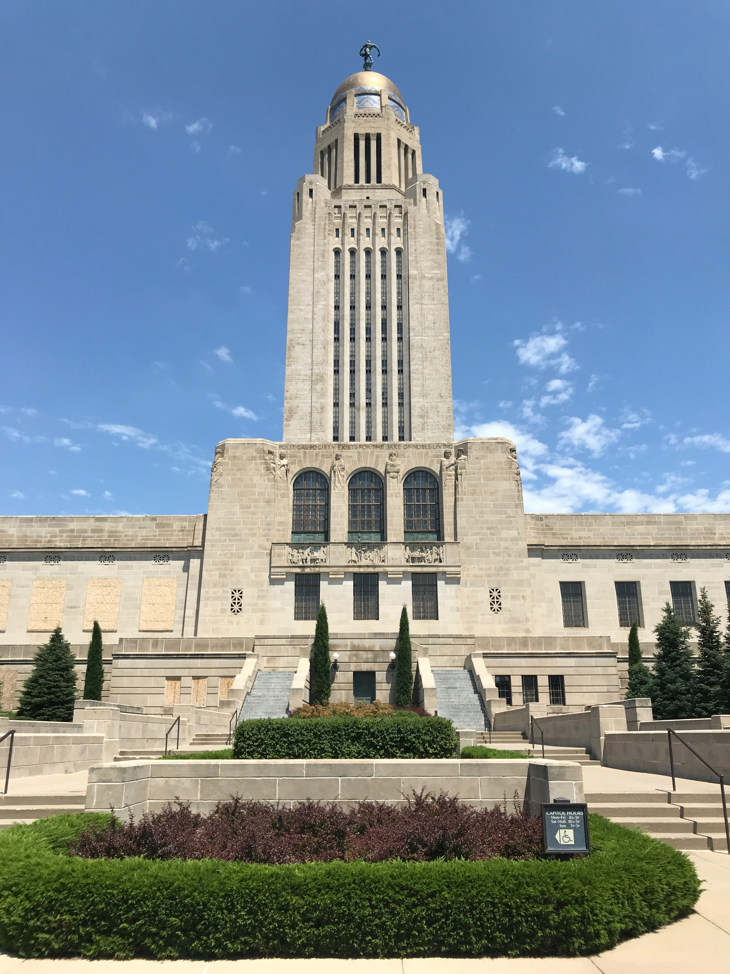 While the Nebraska state capitol in Lincoln is actually quite amazing, the exterior reminds me of a train station.
