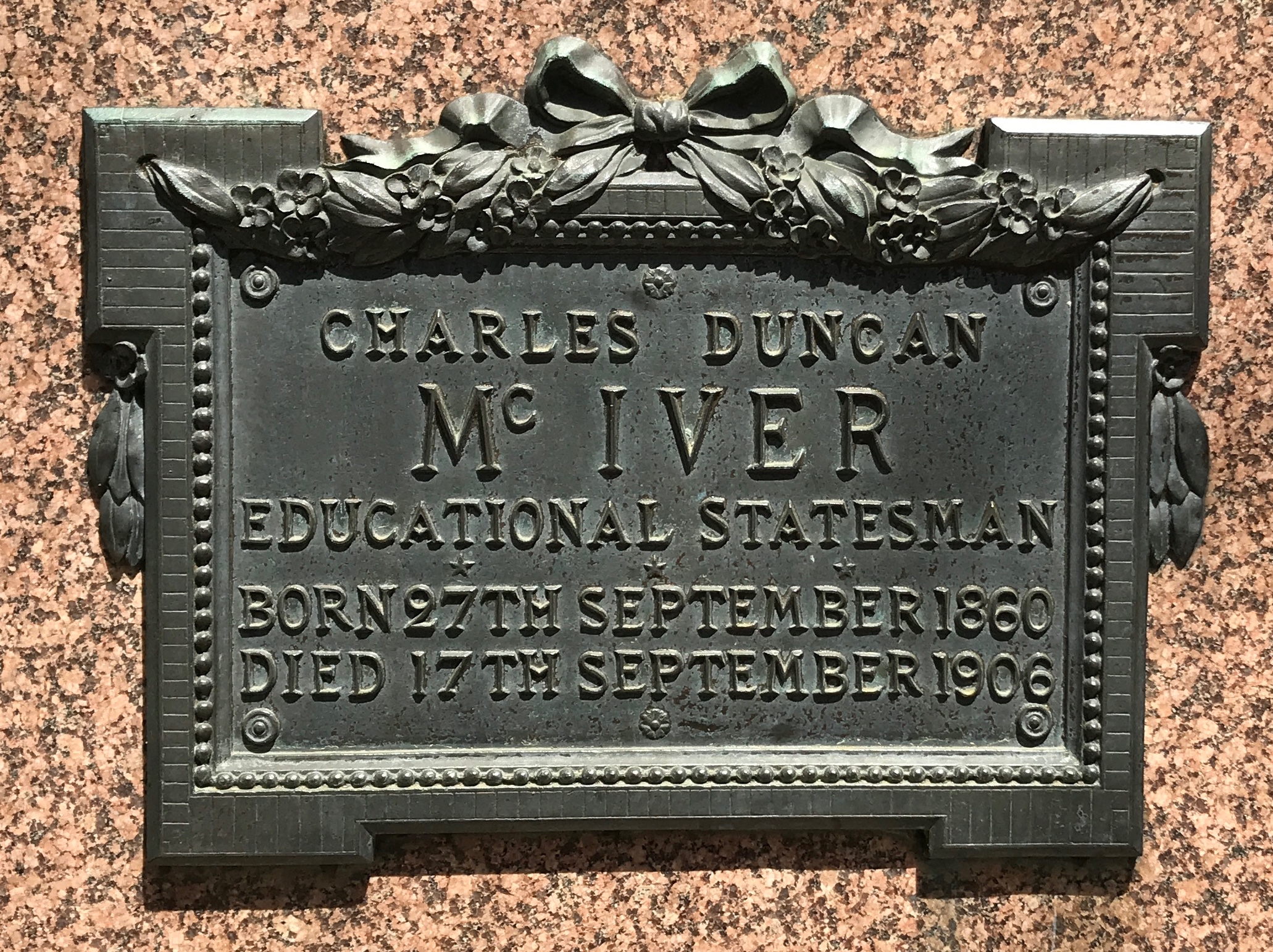 This statue is of Charles Duncan McIver.