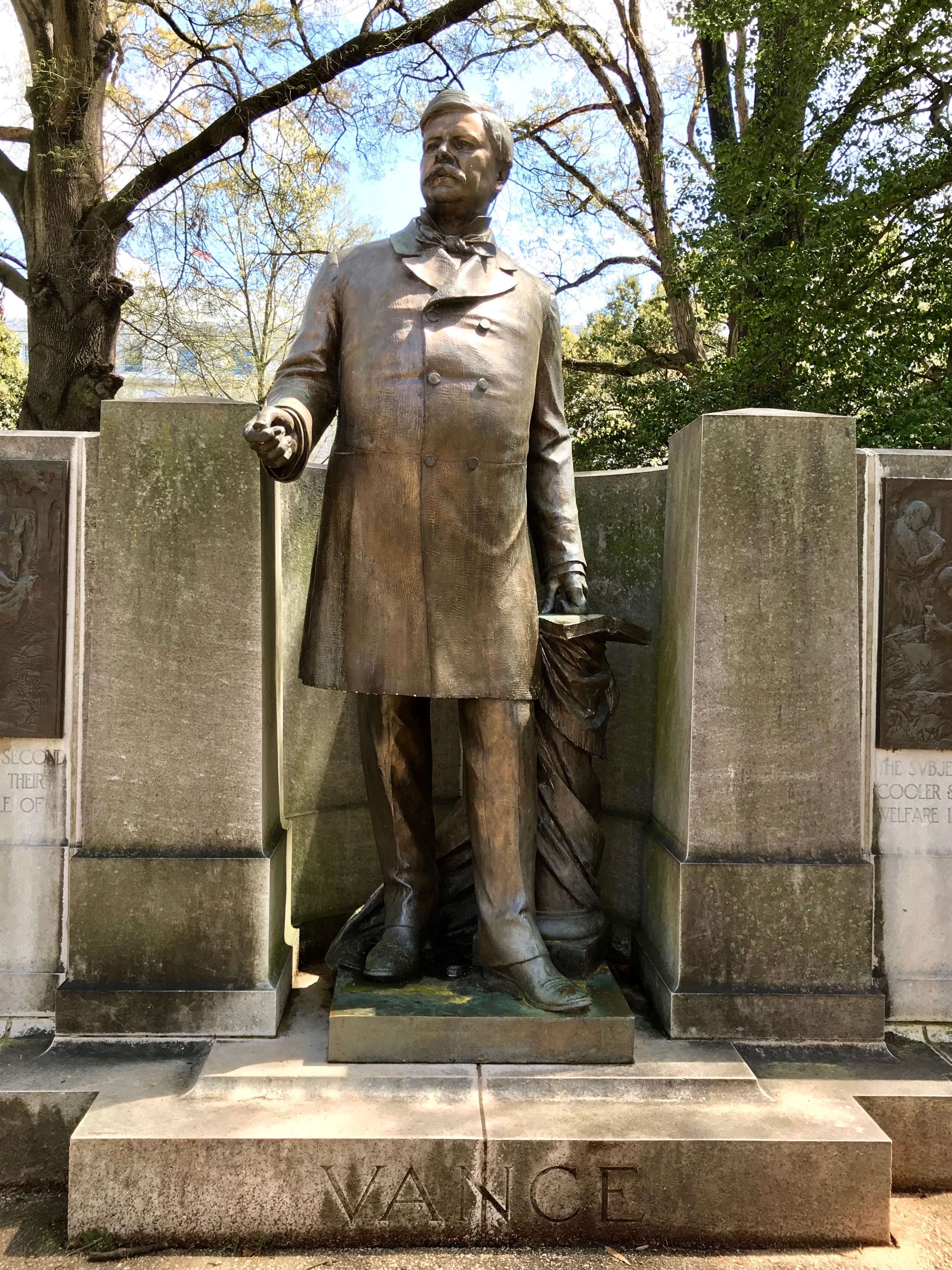 This memorial is to Zebulon Baird Vance, Confederate military officer, 37th and 43rd Governor of North Carolina. What did he do between his first and second terms as Governor? Among other things, he was a U.S. Senator.