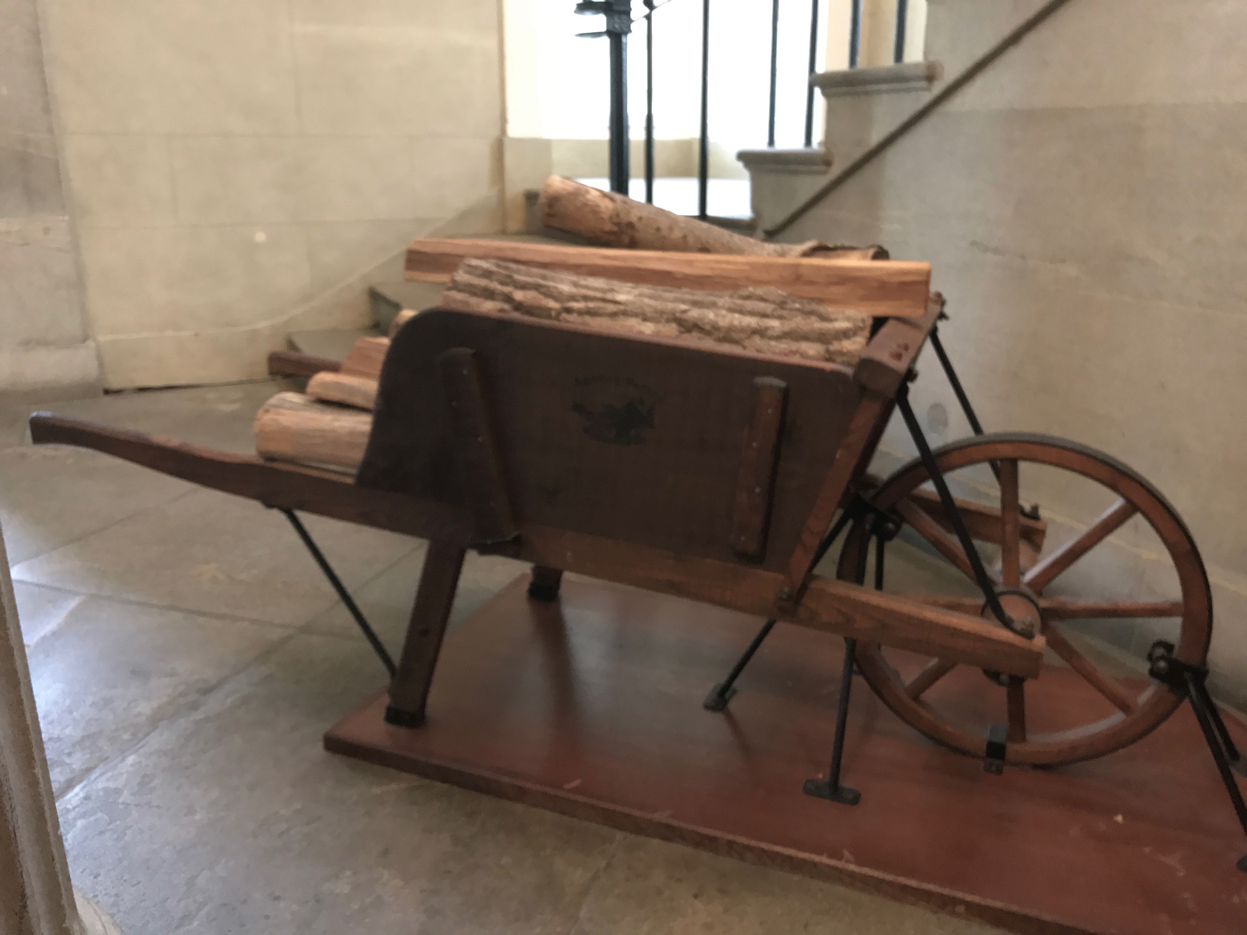 The enslaved African Americans used wheel barrows with iron-rimmed wheels to cart the firewood up to the legislative chambers. That would be 600,000 of wood muscled up those stairs. I wonder how much a single load weighs.
