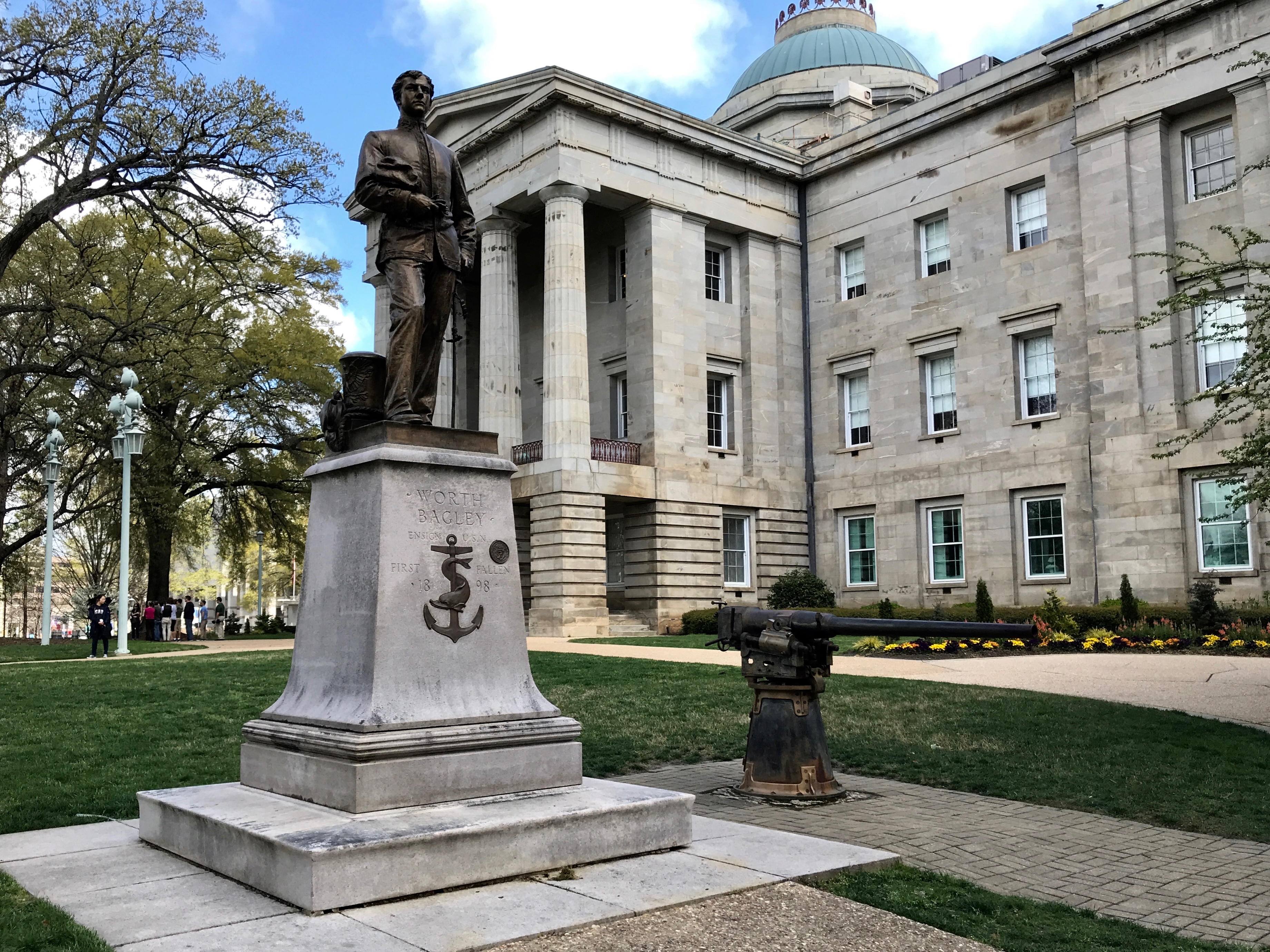 This statue is of Ensign Worth Bagley, who was the only U.S. naval officer killed in action during the Spanish-American War.