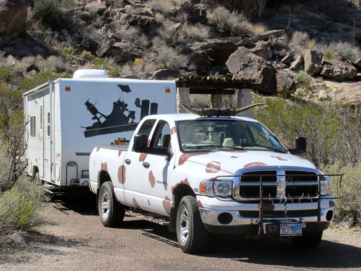 It was foaling season, as some of the young ones hadn’t quite figured out that the road isn’t a great place for a nap. George slowed down so we could get a shot of him. He did get to his feet and saunter away.