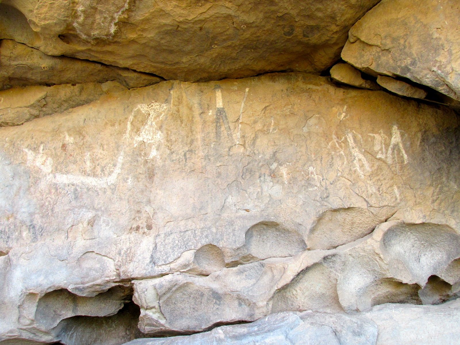 I believe George said that the Hopi made the white images first. When the Navajo took up residence, they added their own touches. Whenever you see horse, you know that it’s the work of the Navajo.