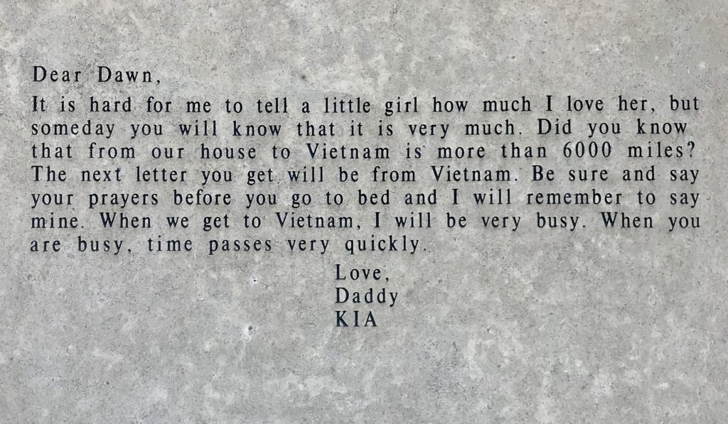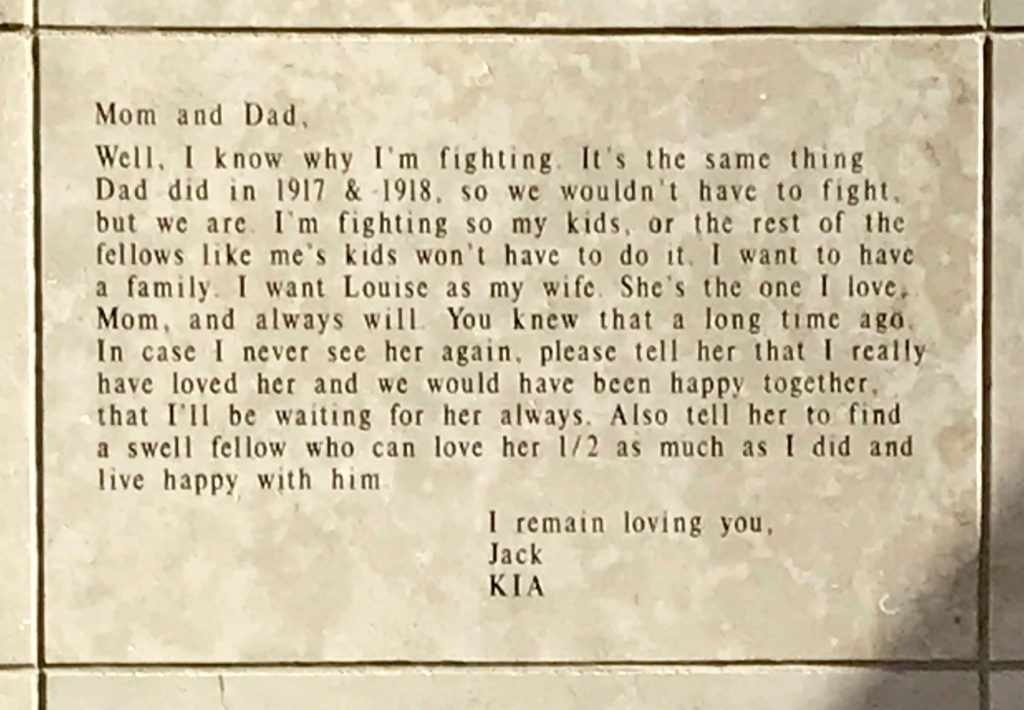 When you get closer, you can read the letters that were selected from the over 1500 letters that were contributed from Ohioan families.