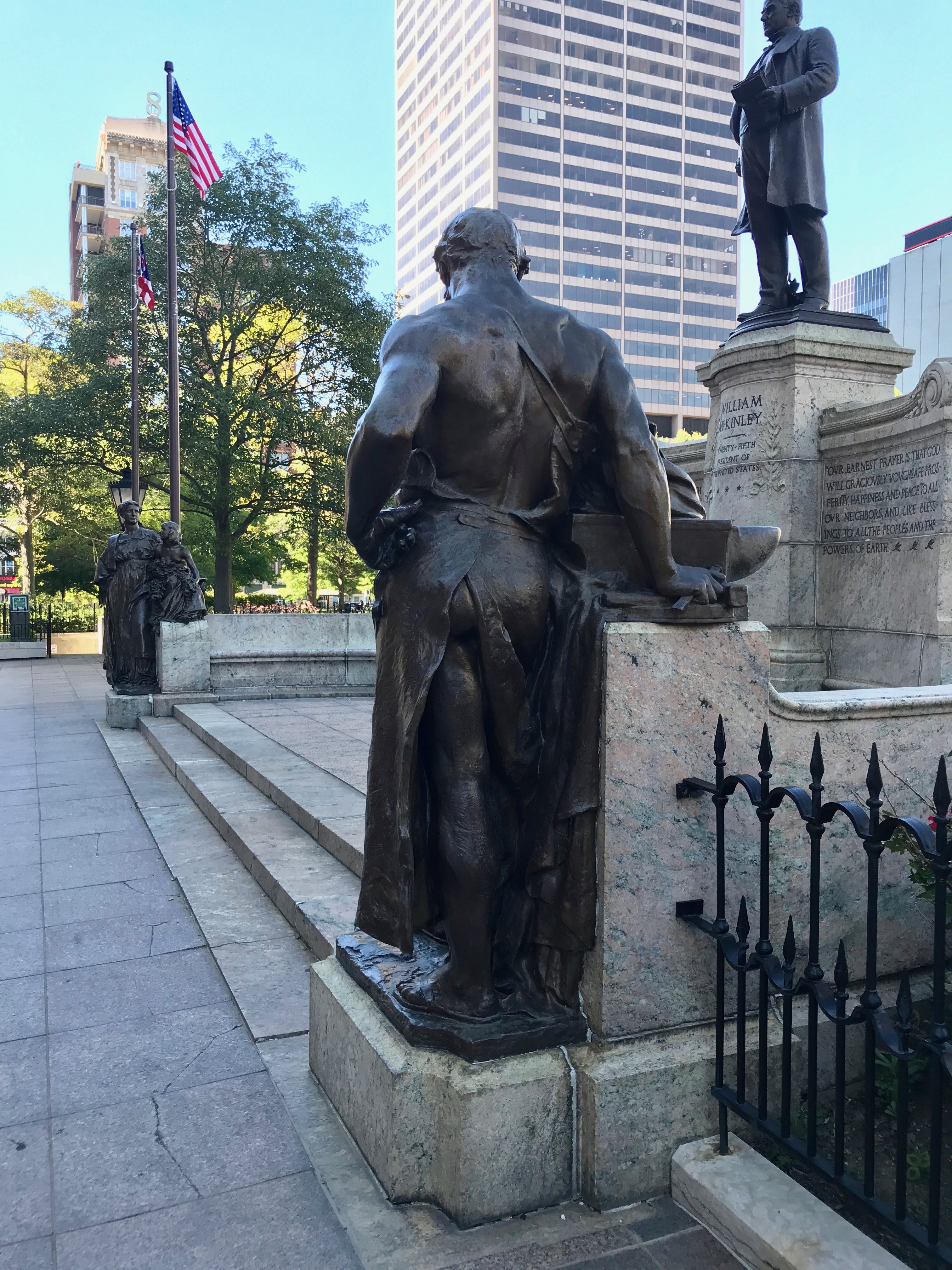I have to admit that I was a little perplexed by the backside of the man on the right side of the memorial.