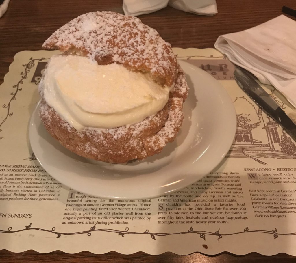 I had to order the Jumbo Cream Puff that people had also urged me to sample. This is how the restaurant’s menu describes it: