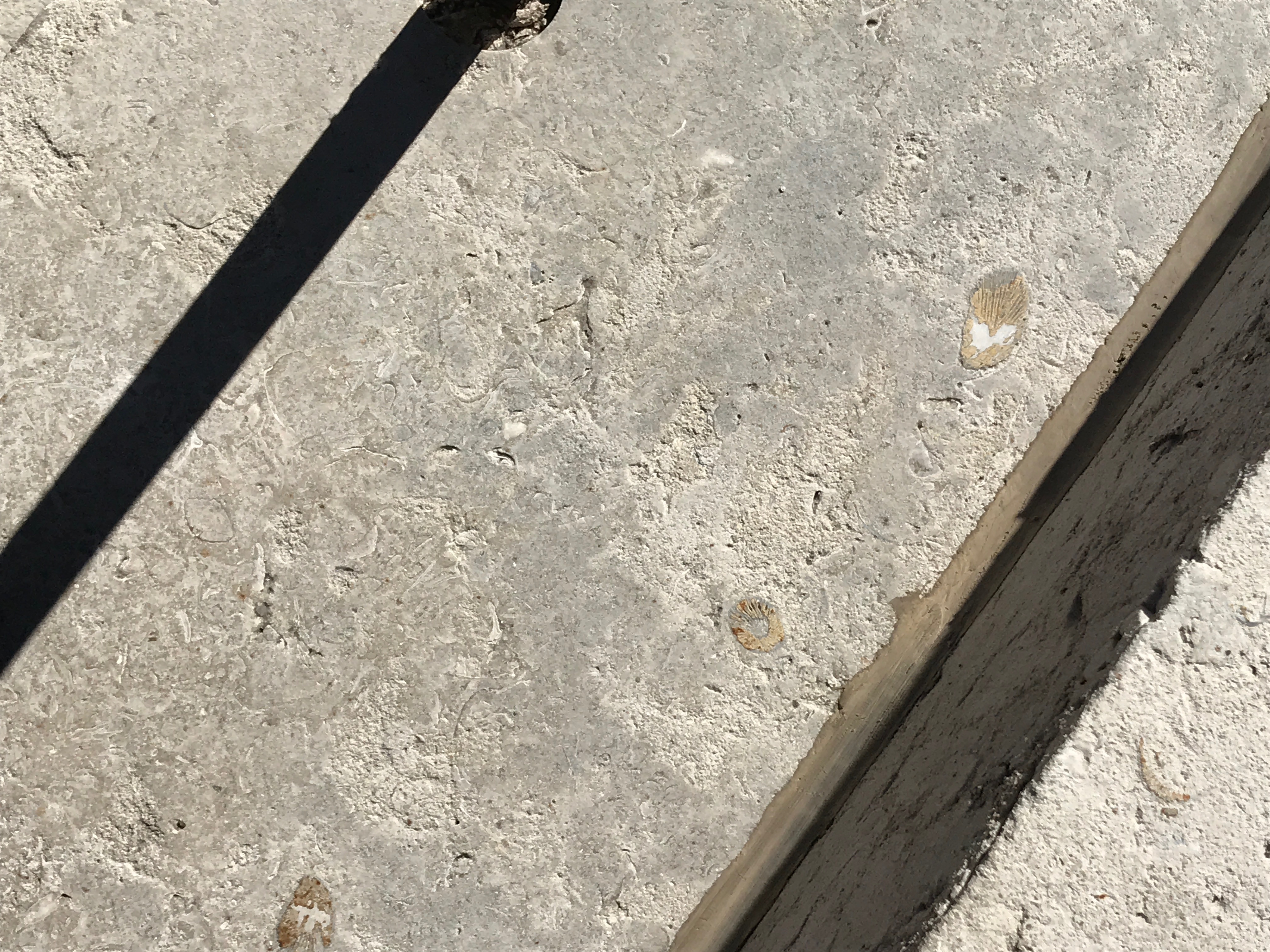 The exterior had a lot to see. For instance, if you look carefully, you can see fossils in the limestone.