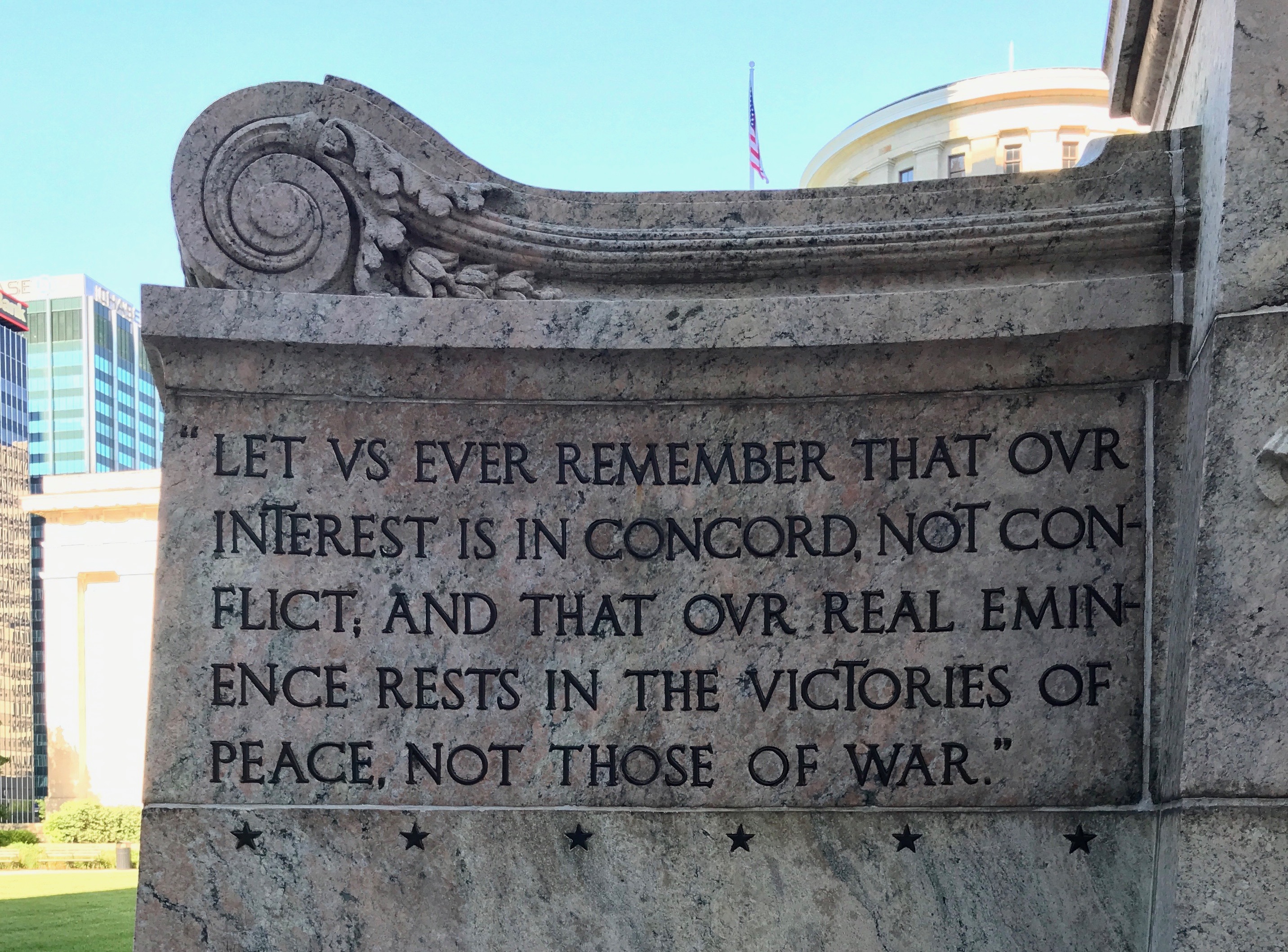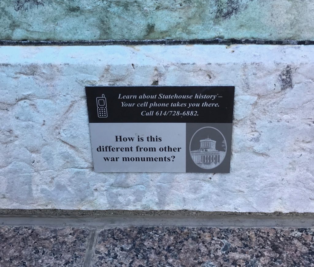 In the slabs around the monument, they had points of Ohioan pride, some of which were flight, space travel, electric light, recording and some other glyph I couldn’t decipher.