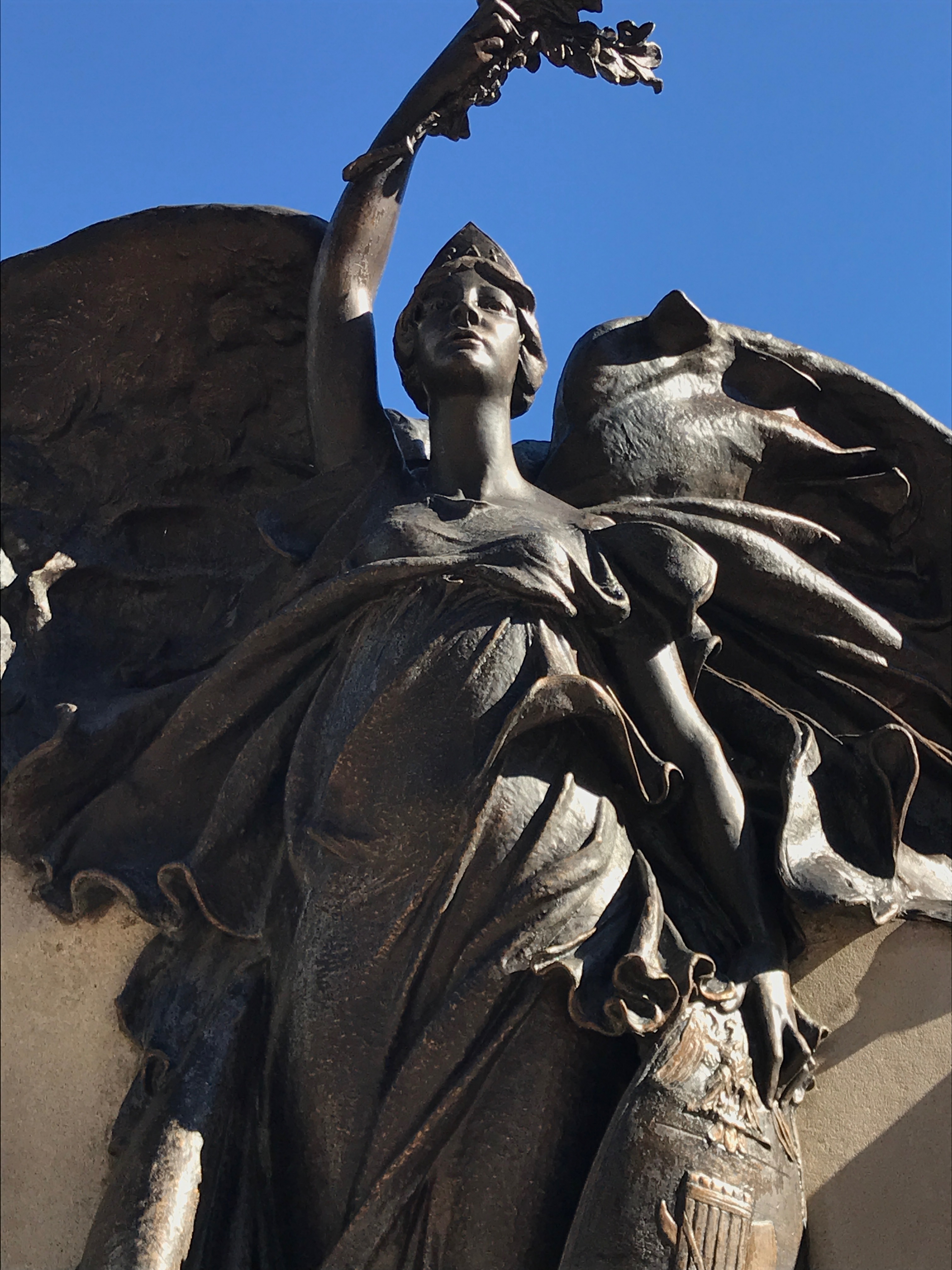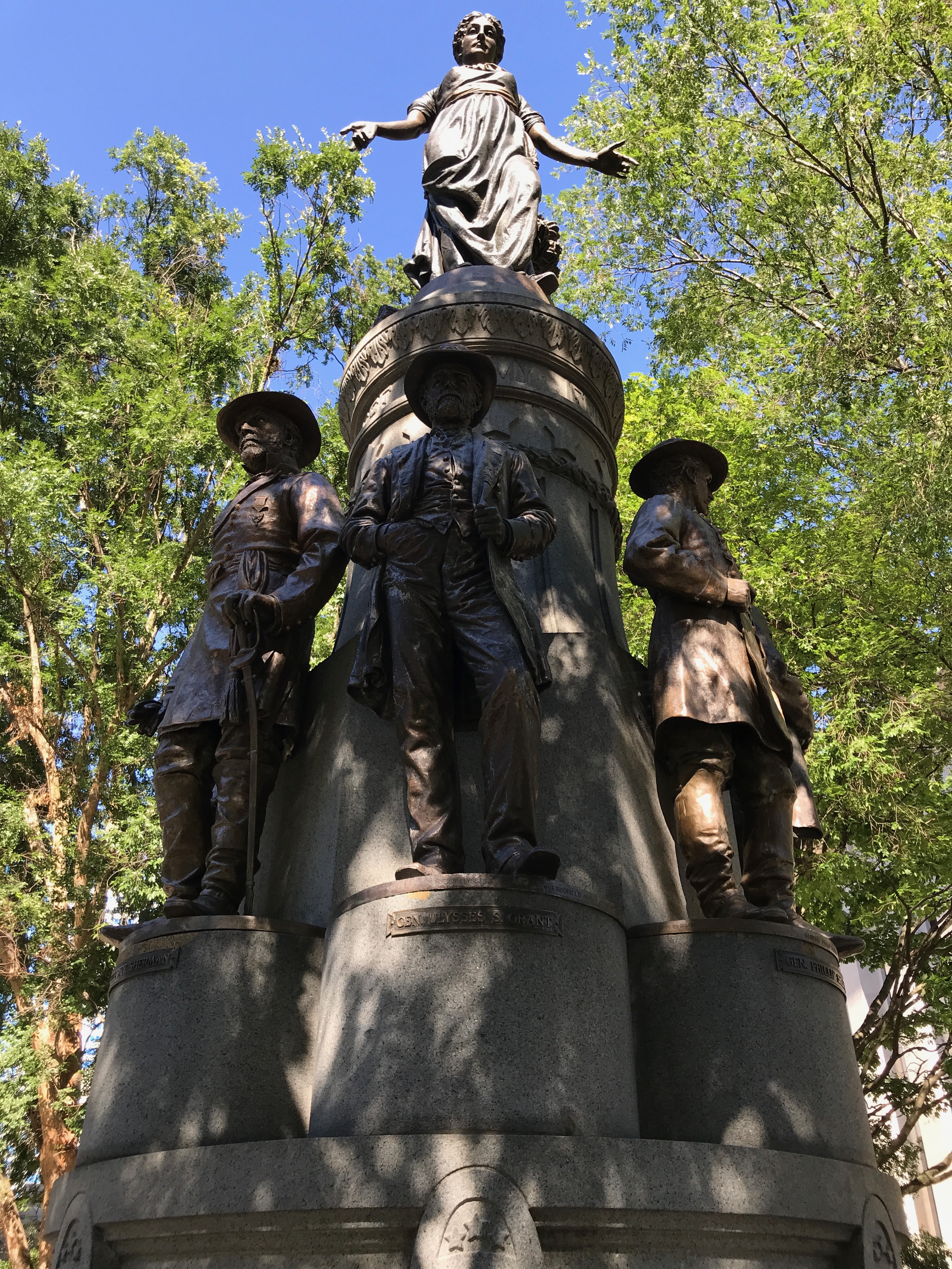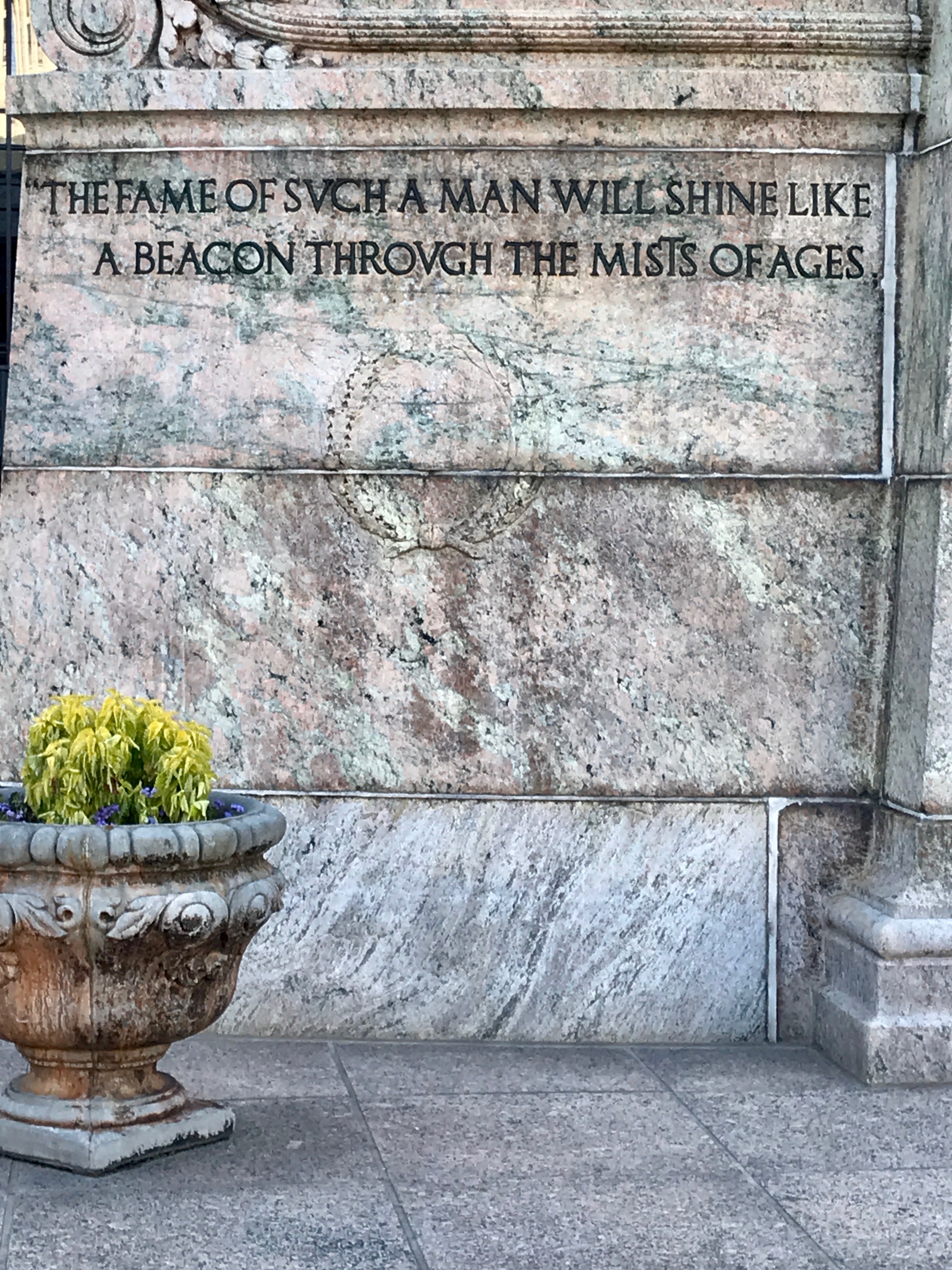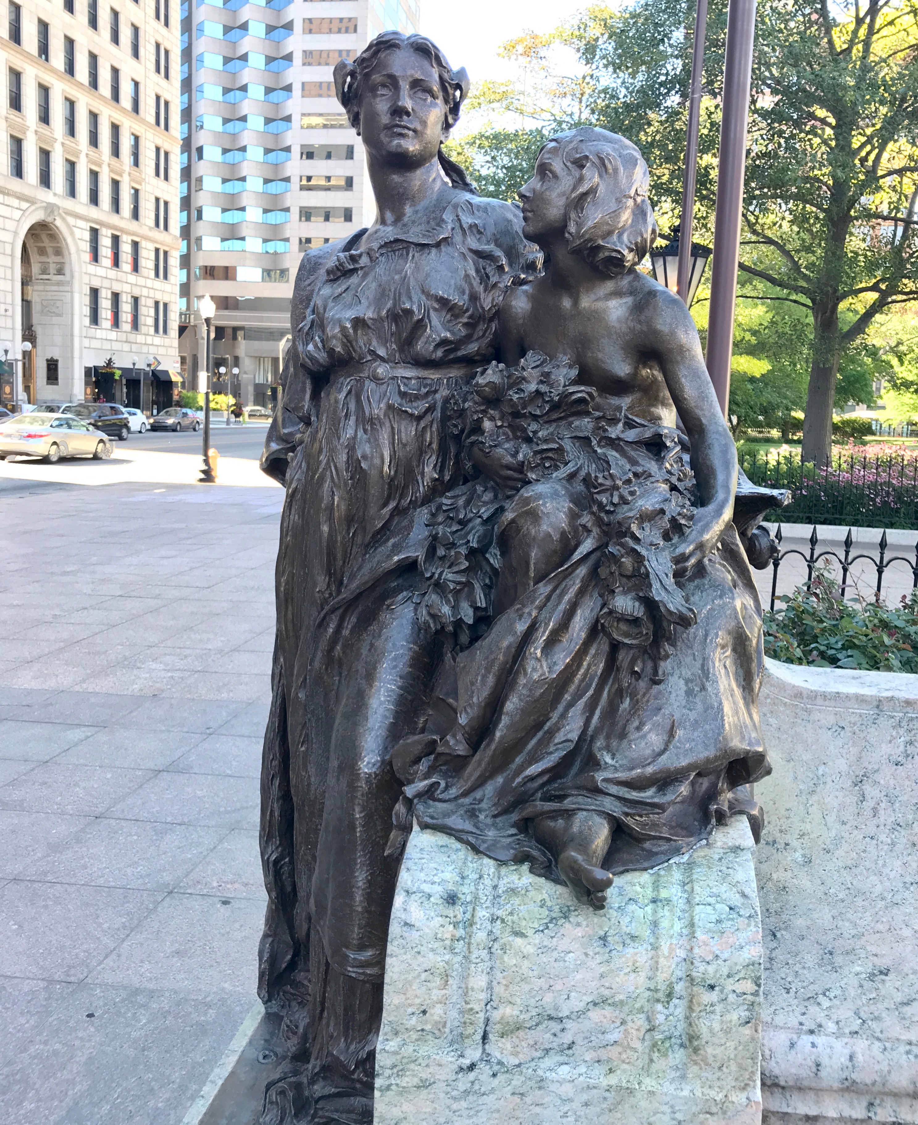 This memorial is called “These Are My Jewels.” The title comes from an anecdote of Roman history about Cornelia, who is depicted at the top of the statue. While her friends took delight in displaying her sumptuous clothing and jewelry, her pride was in her sons.