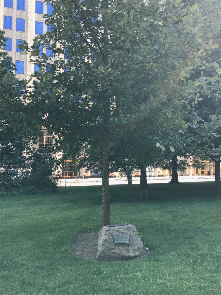 I continued on around the capitol and came upon this tree with a boulder at the base with two plaques on it. I wonder what that is all about?